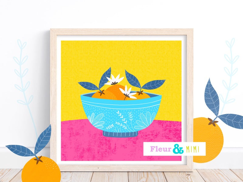 Fleur & Mimi - Framed Giclée Art Print made in Ireland of Oranges in a bowl