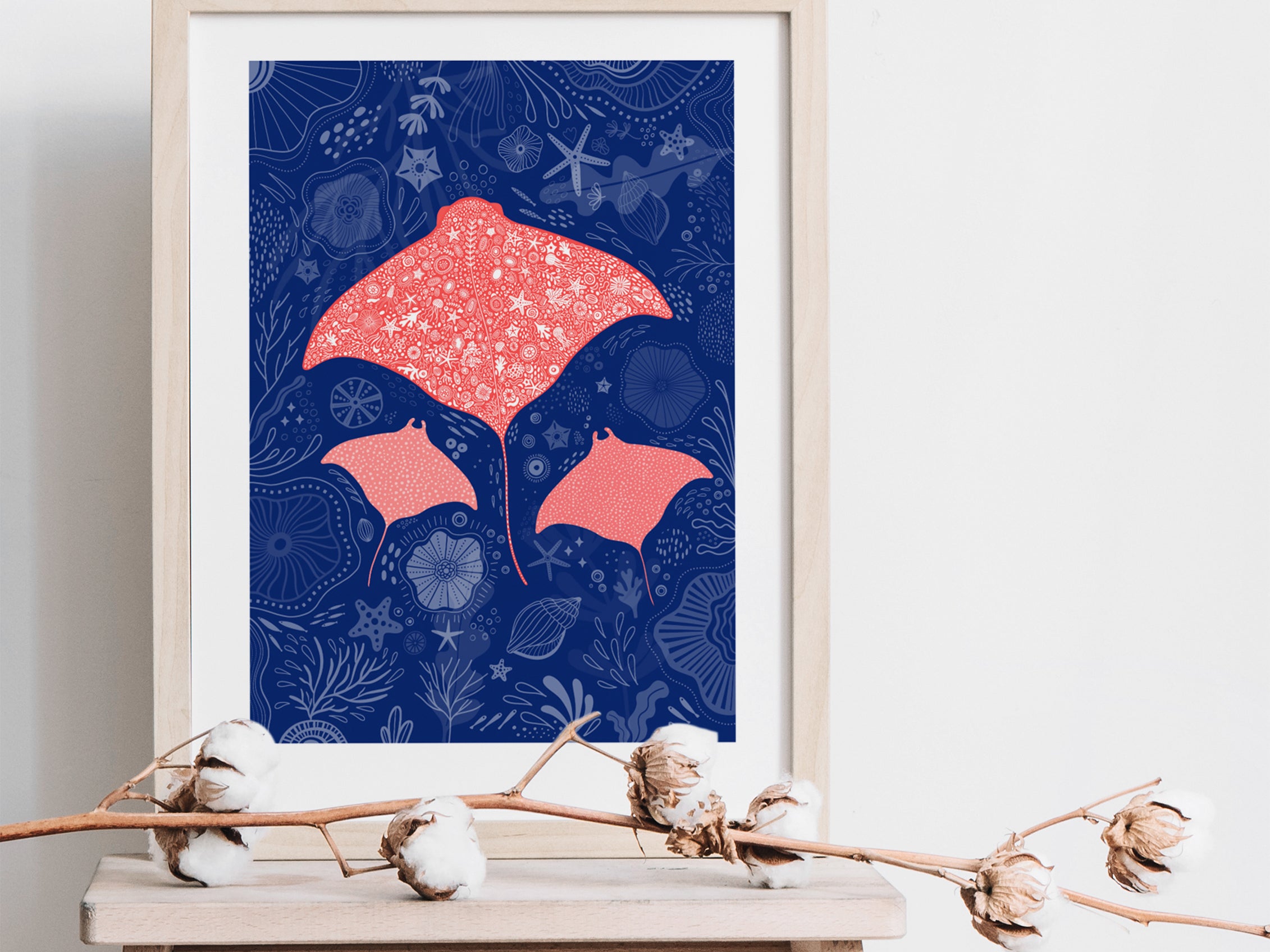Pink Manta Rays - A3 Giclée Art Print
