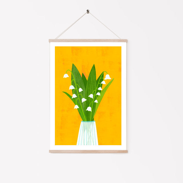 "Little Bells", a colourful art print of snow drops in a vase. The first flowers in many a garden to herald Spring. Illustrated by me in the Fleur & Mimi Studio.