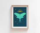 A beautiful illustration of the Luna Moth, a large, beautiful species of moth found in North America. It is known for its striking appearance, with green wings and a long, narrow tail. Luna Moths are active at night and are attracted to lights, making them popular subjects for moth enthusiasts and photographers. They feed on the nectar of various flowering plants and their caterpillar stage feeds on deciduous tree leaves. Luna Moths have a short lifespan as adults, typically only living for a week or less, during which they mate and lay eggs. Their striking appearance and brief lifespan make them symbols of transformation and renewal.