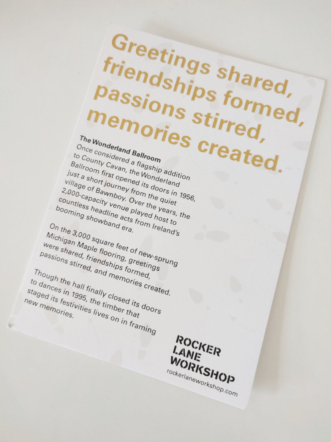 A picture frame made from reclaimed maple floorboards from the Wonderland Ballroom in Bawnboy, Co. Cavan which opened in 1956.
